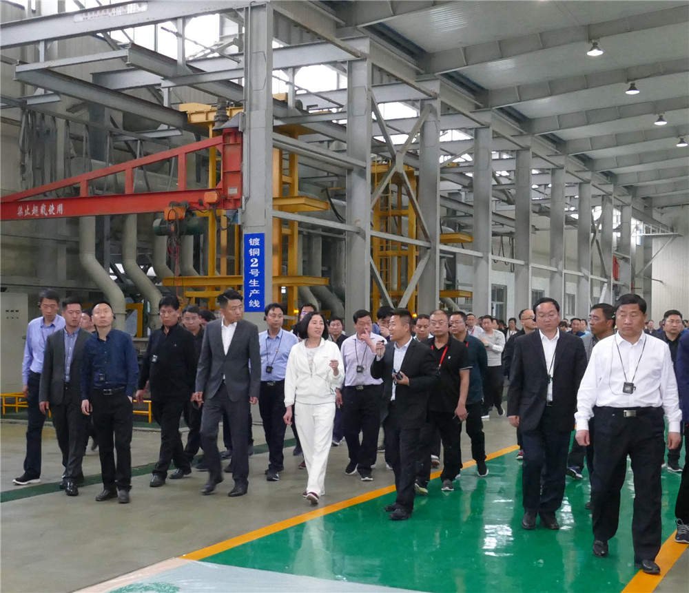 此次觀摩團(tuán)主要對我公司的表面處理車間電鍍工藝、土壤污染源頭防范、污水處理、危險(xiǎn)廢物管理等方面進(jìn)行考察??偨?jīng)理郭釧代表集團(tuán)公司對各位領(lǐng)導(dǎo)的到來表示熱烈的歡迎,并對公司基本情況、環(huán)保投入等方面做了簡要介紹。公司環(huán)保項(xiàng)目辦主任李宏旺對公司的電鍍工藝、土壤污染源頭防范、污水處理、危險(xiǎn)廢物管理做了詳細(xì)的介紹。公司的環(huán)保治理工作得到了觀摩團(tuán)的一致好評。