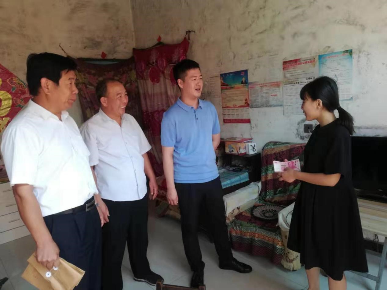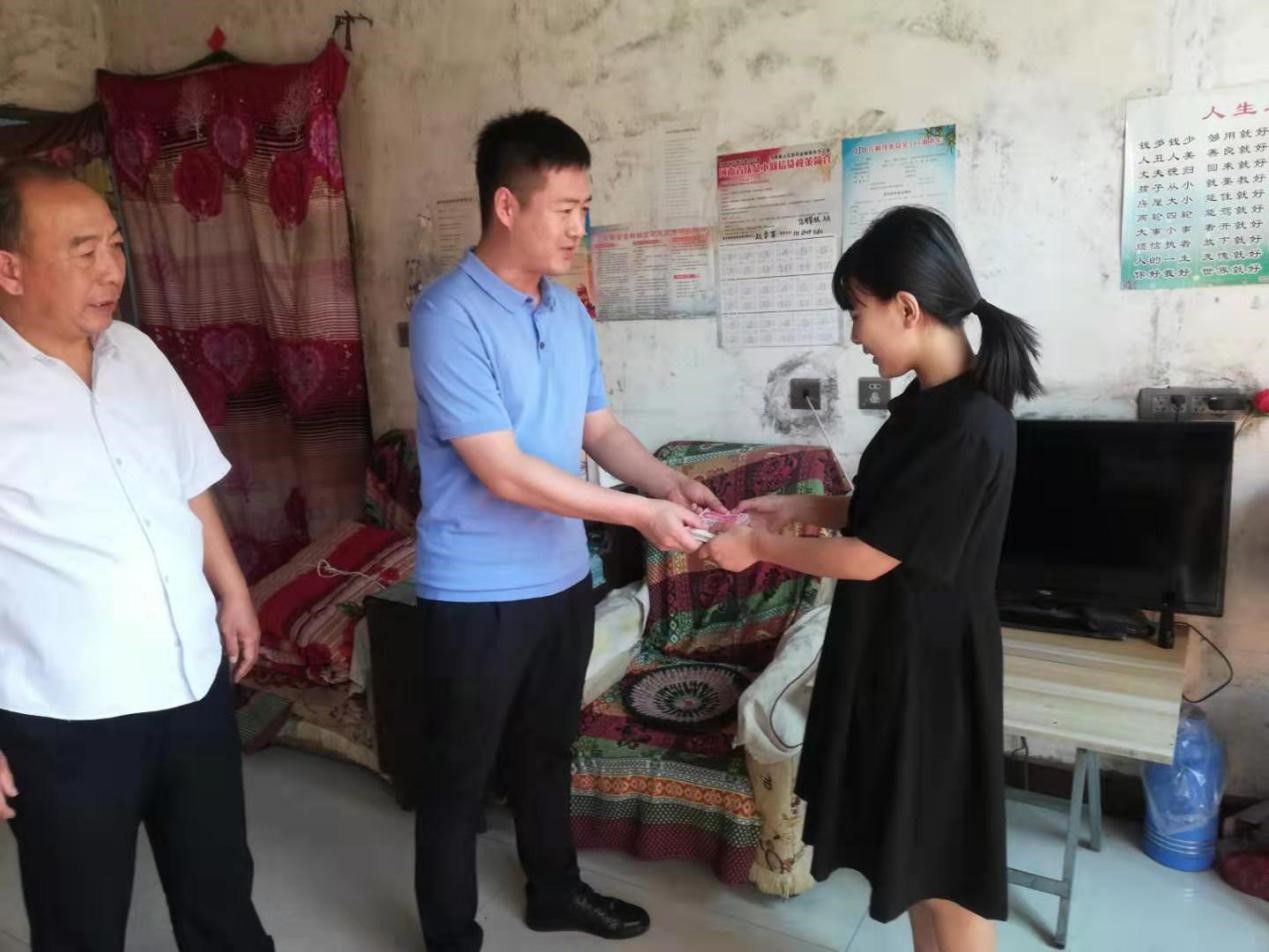 金秋將至,又是莘莘學子收獲的季節(jié),為進一步弘揚重視教育、尊重知識、鼓勵成才的社會風氣,幫助貧困大學生順利進入大學校園。 8月31日,公司總經(jīng)理助理曲笑輝,工會主席路建存在申村黨支部書記郭慶法的陪同下,深入申村貧困家庭郭亭于家中,將8000元助學金送到利用高考結束的空閑時間剛剛打工回來的郭亭于手中。
