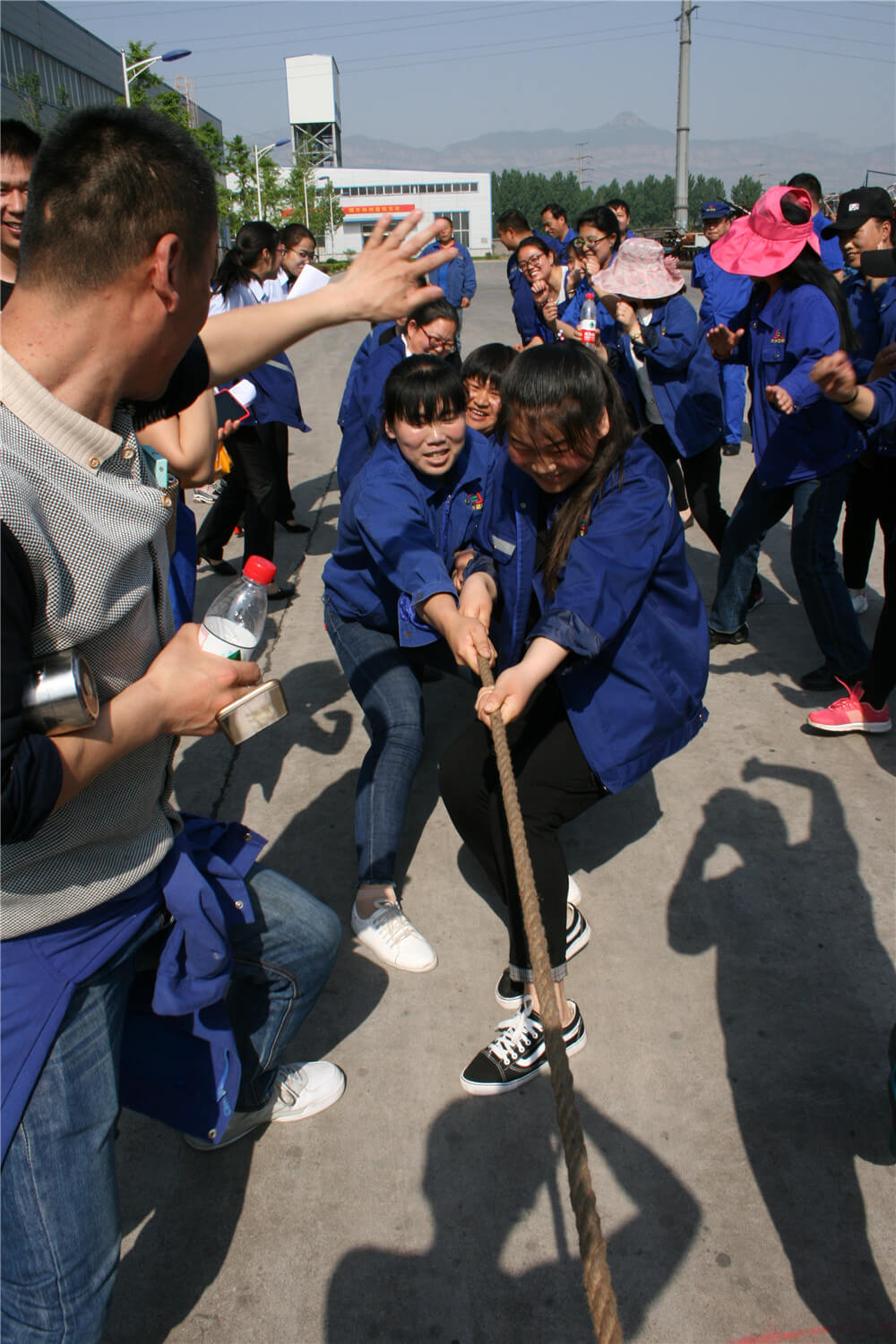 開幕式結(jié)束后,籃球、短跑、接力、拔河、跳繩、踢毽、乒乓球、羽毛球、象棋等13個(gè)項(xiàng)目在指定的比賽場(chǎng)地同時(shí)舉行?;@球場(chǎng)上身穿藍(lán)球衣朗坤公司隊(duì)和紅色球衣生產(chǎn)系統(tǒng)隊(duì)的比賽精彩紛呈,扣人心弦。隨著"砰"一聲,發(fā)令槍響,接力運(yùn)動(dòng)員疾步如飛,向終點(diǎn)沖刺。觀眾“加油、加油”的助威吶喊聲,將拔河比賽推向高潮。