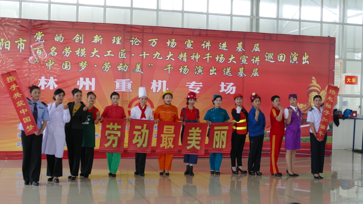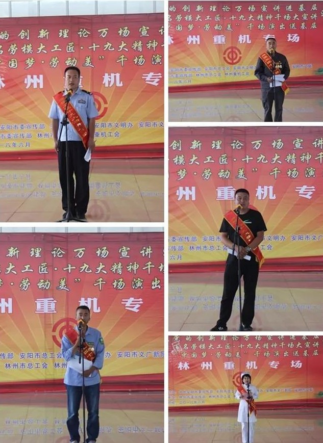 6月6日下午,安陽市黨的創(chuàng)新理論萬場宣講進基層、百名勞模大工匠?十九大精神千場大宣講暨“中國夢 勞動美”千場演出送基層巡回演出活動走進林州重機。河南省委宣傳部副部長尹書博,省委宣傳部理論處副處長楊小強,省委宣傳部理論教育講師團副團長趙琳,安陽市委宣傳部副部長冀曉東,安陽市委宣傳部理論科長龍晨曦,安陽市總工會宣教部部長張艾敏,林州市委常委、宣傳部長王獻青,林州市總工會主席栗旺生,副主席張曉云, 公司黨委副書記、副總經(jīng)理趙正斌,黨委委員、工會主席路建存及職工代表300余人等出席活動。